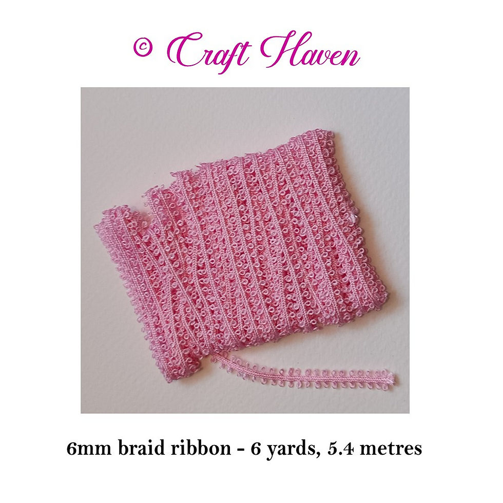 6mm Pink Braid Ribbon - 6 Yards 5.4 Metres New Baby Card Making Sewing Crafts